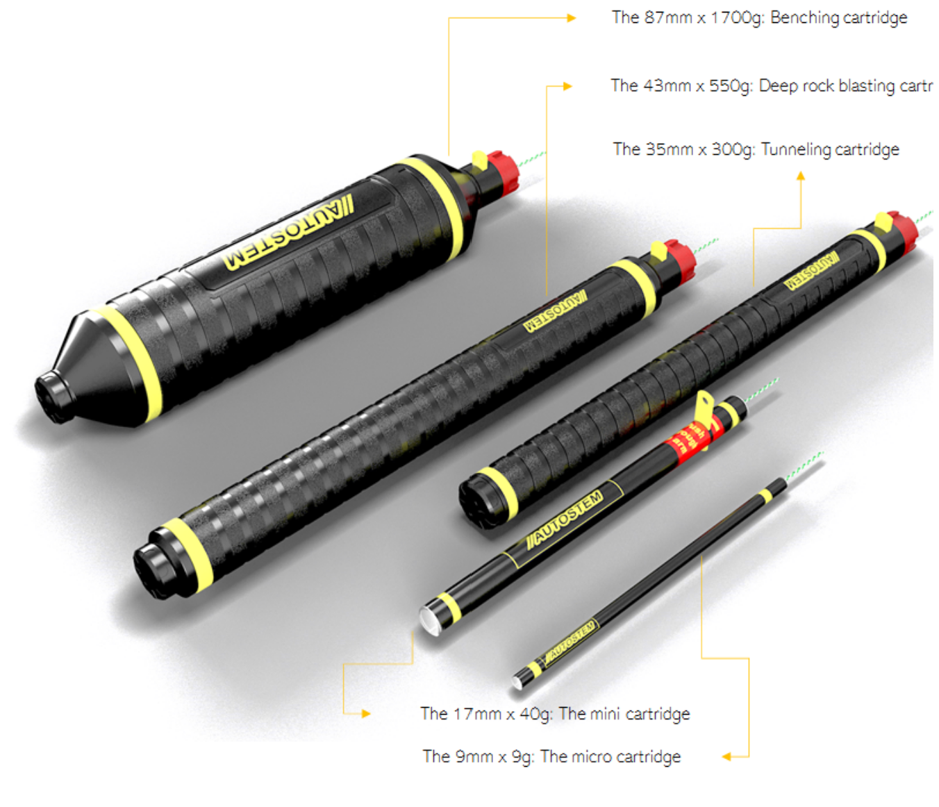 AutoStems sprängpatroner kräver inte användning av en extern detonator, vilket innebär att explosiva tillbehör inte är nödvändiga.